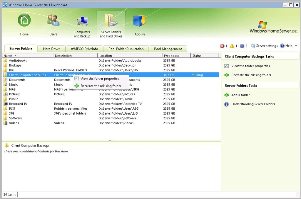 This all means that there is no functional drive pooling and the only resort I have found is to attempt to reinstall/re-set WHS 2011 to factor defaults.
